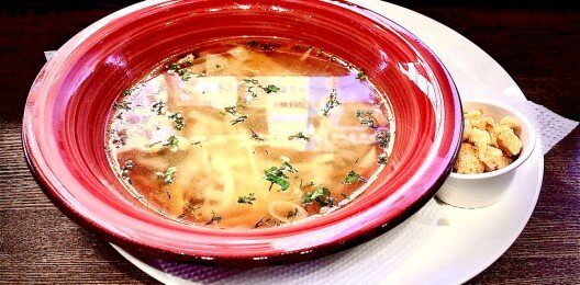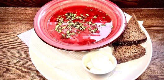 Домашняя солянка с зеленью, сметаной, бородинским хлебом